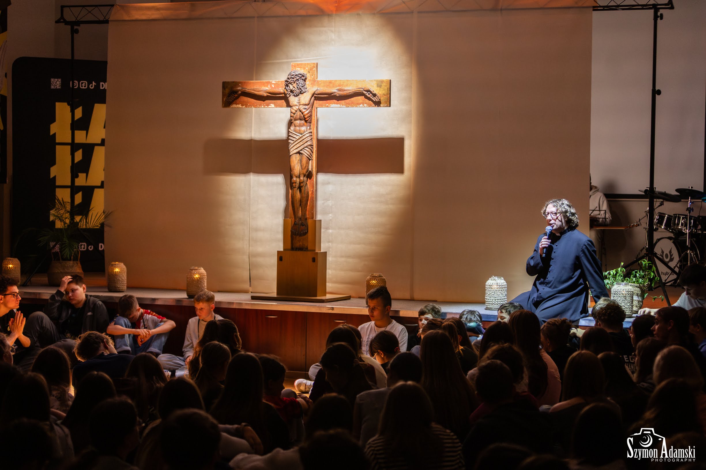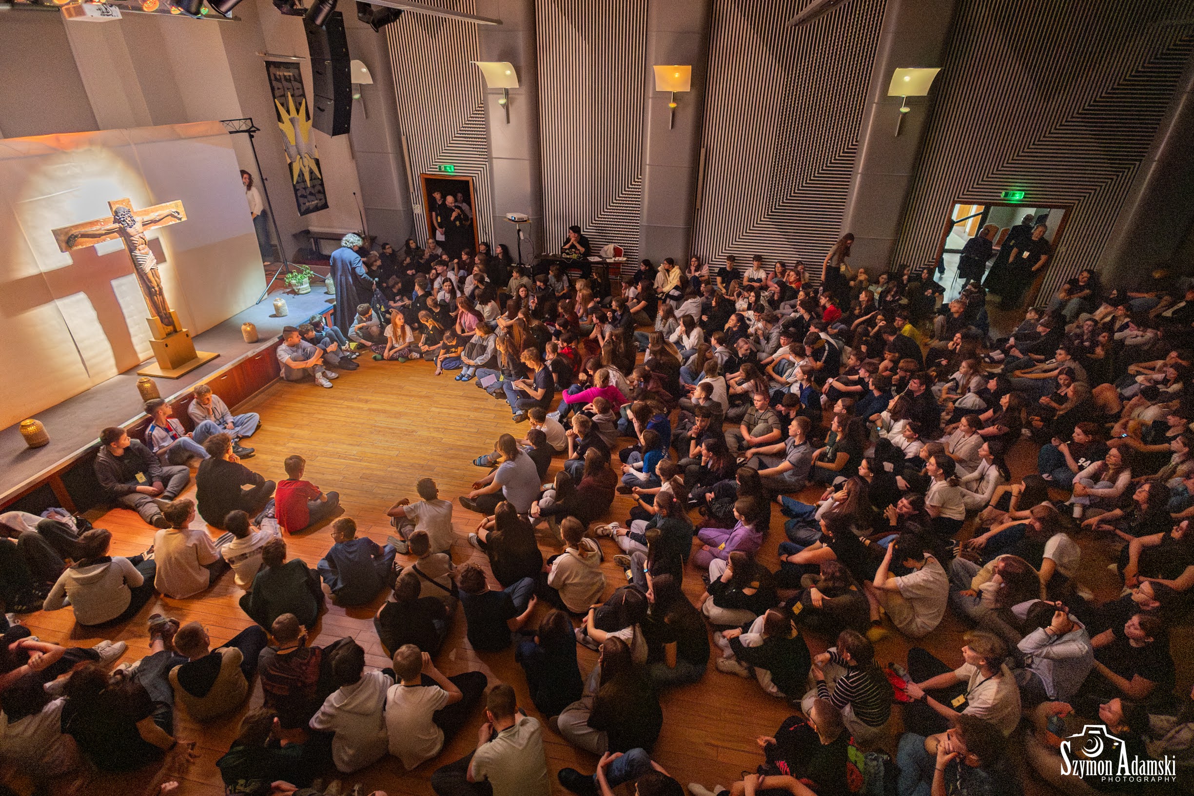 W tej części relacji możecie znaleźć zdjęcia z pierwszego dnia wydarzenia. To właściwie tylko wieczór, ale to bardzo ważny czas. Po powitalni (tak nazywamy naszą recepcję) i kolacji oficjalnie rozpoczęliśmy spotkanie na auli. Potem był czas na pierwsze spotkania w grupkach, pierwsze kakao i pierwsze rozmowy we wszystkich zakątkach Domu Pielgrzyma, a wszystko to prowadziło do najważniejszego punktu dnia, czyli wieczornego nabożeństwa Drogi Krzyżowej (w bardzo ławkowym stylu) i adoracji krzyża.